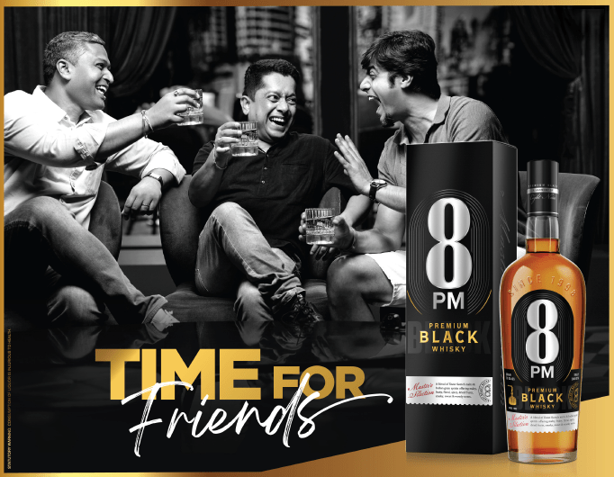 Presenting 8PM Premium Black- India's new premium whisky. It's a Master's Selection for the true connoisseurs of fine taste. This smooth blend celebrates success, friendship and the spirit of camaraderie even among rivals because when shared, even rivals become friends.